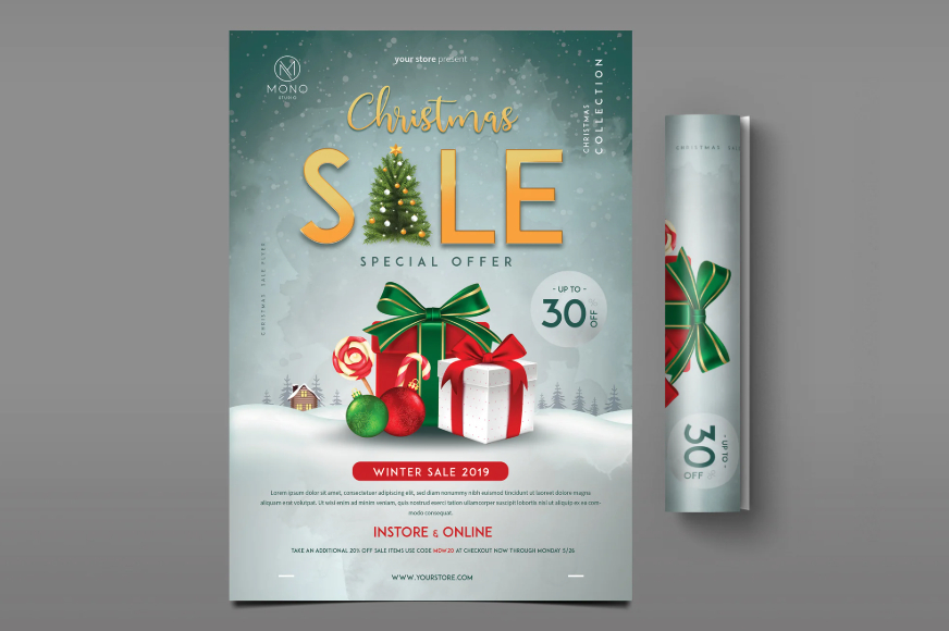 Flyers and brochures are print materials that make your holiday promotions stand out with clear, eye catching visuals. Whether you’re promoting a seasonal event, highlighting gift bundles, or featuring new products, these pieces offer an effective and easy way to share key information at a glance while reinforcing your brand’s festive message.